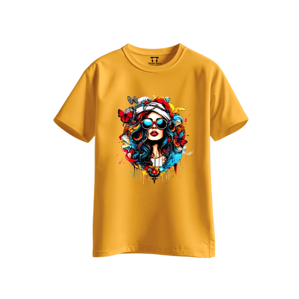 Stylish Sunglasses Girl Printed Cotton T-shirt For Girls