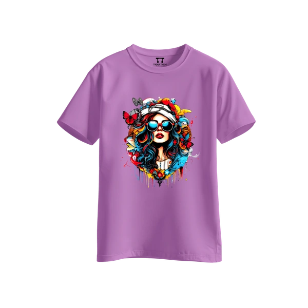 Stylish Sunglasses Girl Printed Cotton T-shirt For Girls